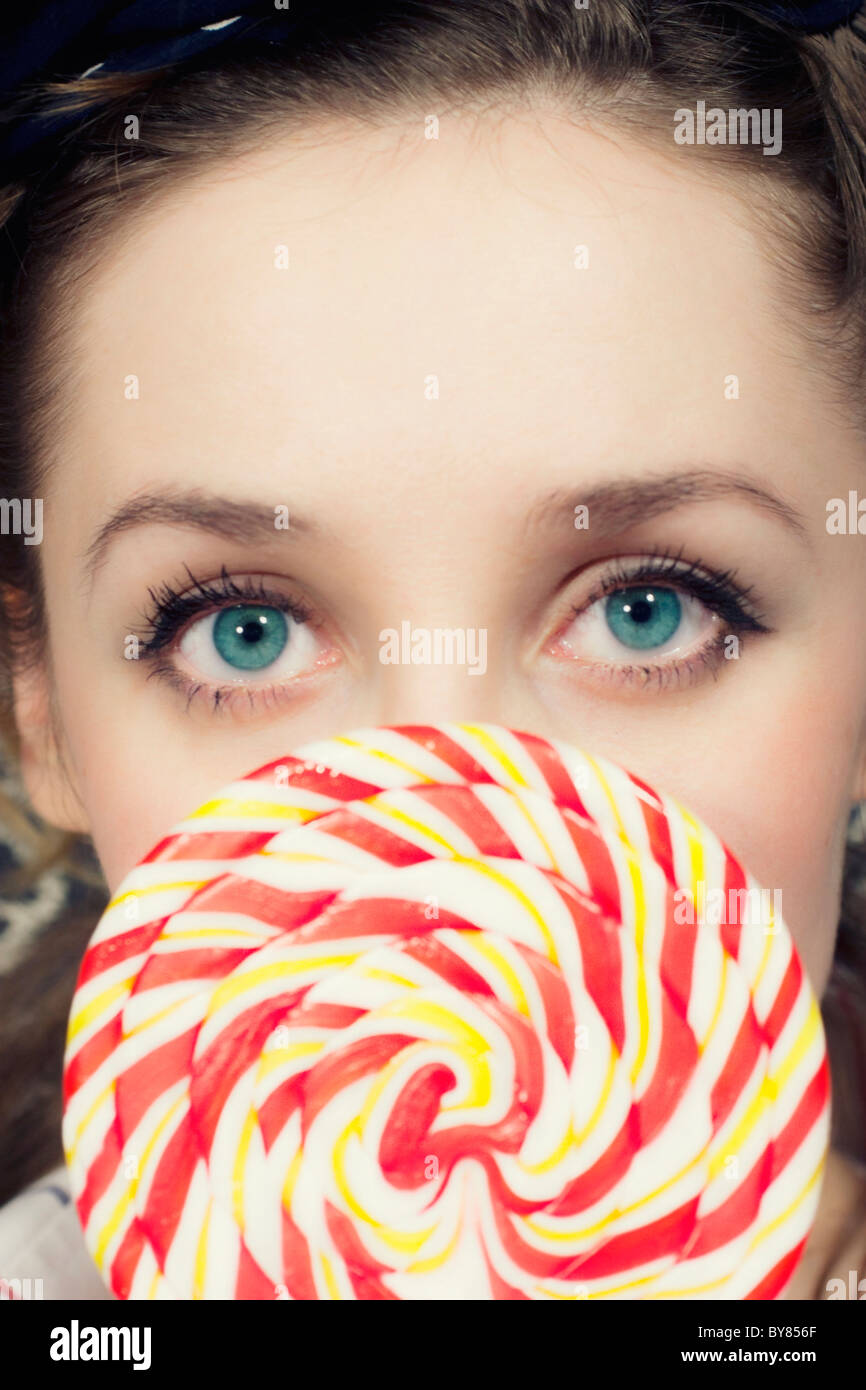 Blue Eyes Of Woman And Sweet Close Up Stock Photo Alamy