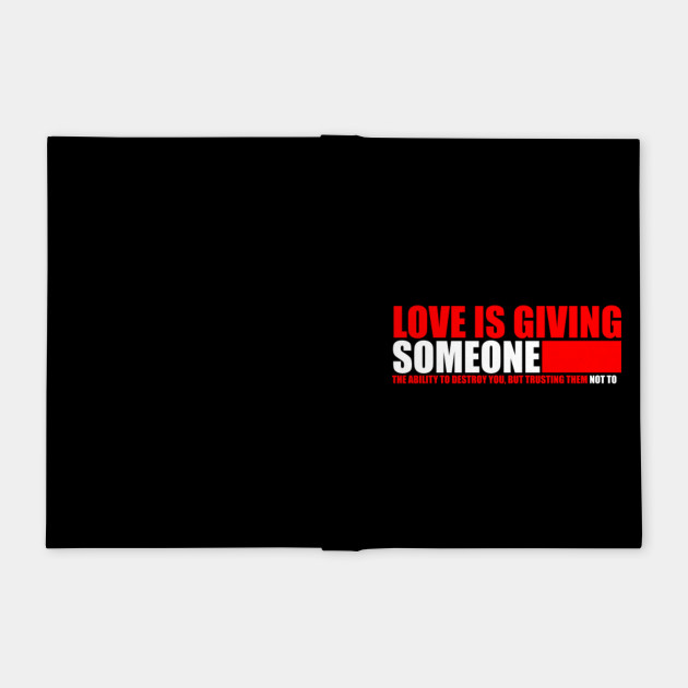 Love is giving someone the power to destroy youbut trusting them not to Sharing is Caring – Don’t forget to share this quote !. “Love is giving someone the power to completely destroy you, and hoping that they won’t” ― Suzanne Wright, Feral Sins Read more quotes from Suzanne Wright. Made of durable canvas and white polyester!.
