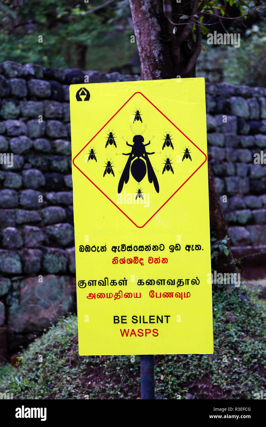 Segno Di Avvertimento Di Pericoli Derivanti Da Vespe A Sigiriya In Sri Lanka Noto Come Il Lion Rock 180 Metri Di Granito Alta Affioramento Di Sigiriya E Stato Foto Stock Alamy