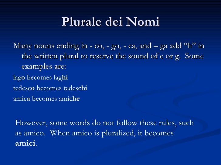Plurale Plural Il Plurale Dei Sostantivi Si Ottiene Di Norma