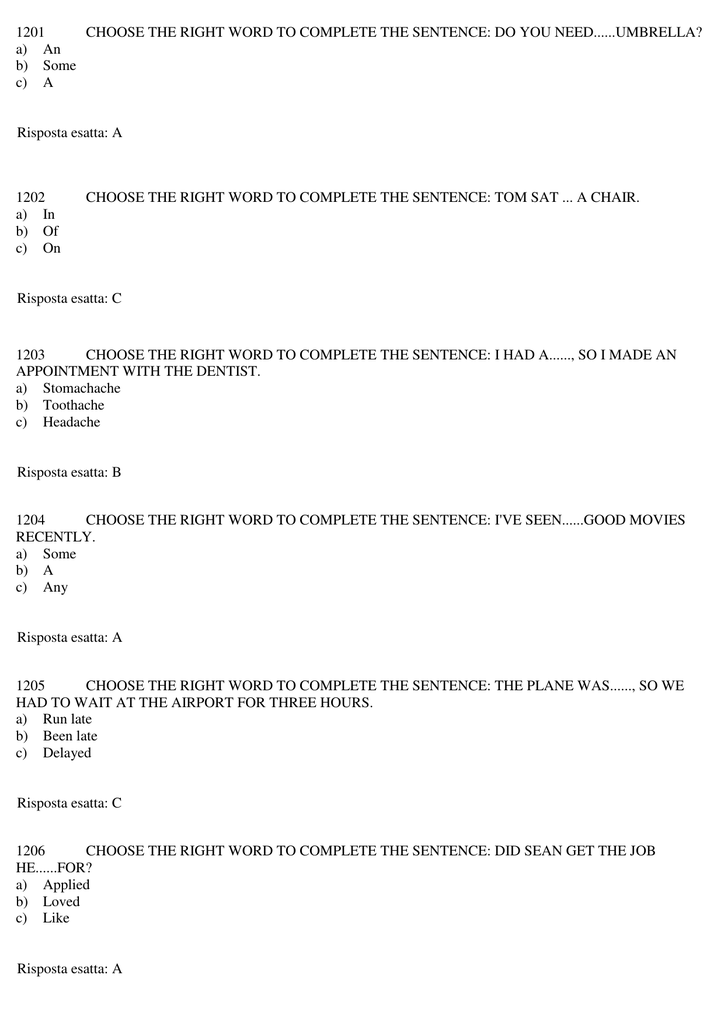 11 Choose The Right Word To Complete The