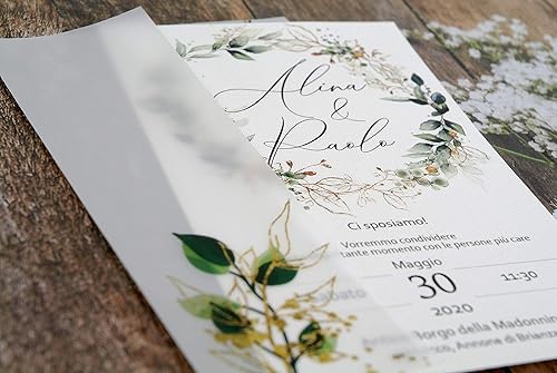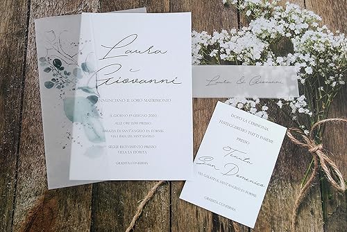 Partecipazioni Matrimonio Personalizzate Vellum Inviti Nozze Con Carta Traslucida Greenery 10 Pezzi Amazon It Handmade