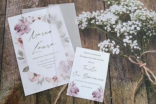 Partecipazioni Matrimonio Personalizzate Vellum Inviti Nozze Con Carta Traslucida Fiori Malva 10 Pezzi Amazon It Handmade