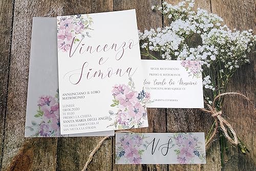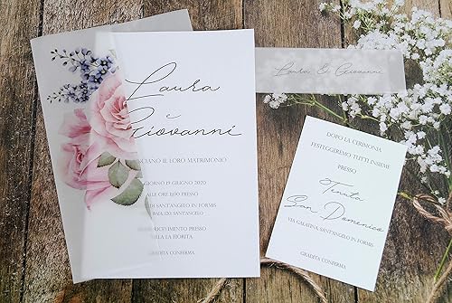 Partecipazioni Matrimonio Personalizzate Vellum Inviti Nozze Con Carta Traslucida Fiori Rosa E Viola 10 Pezzi Amazon It Handmade