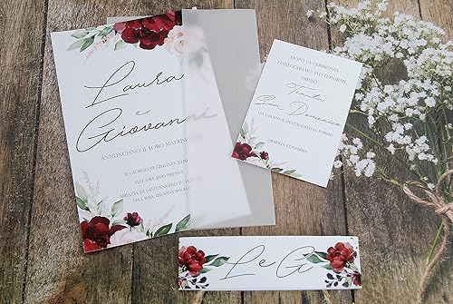 Partecipazioni Matrimonio Personalizzate Vellum Inviti Nozze Con Carta Traslucida Fiori Bordeaux 10 Pezzi Amazon It Handmade