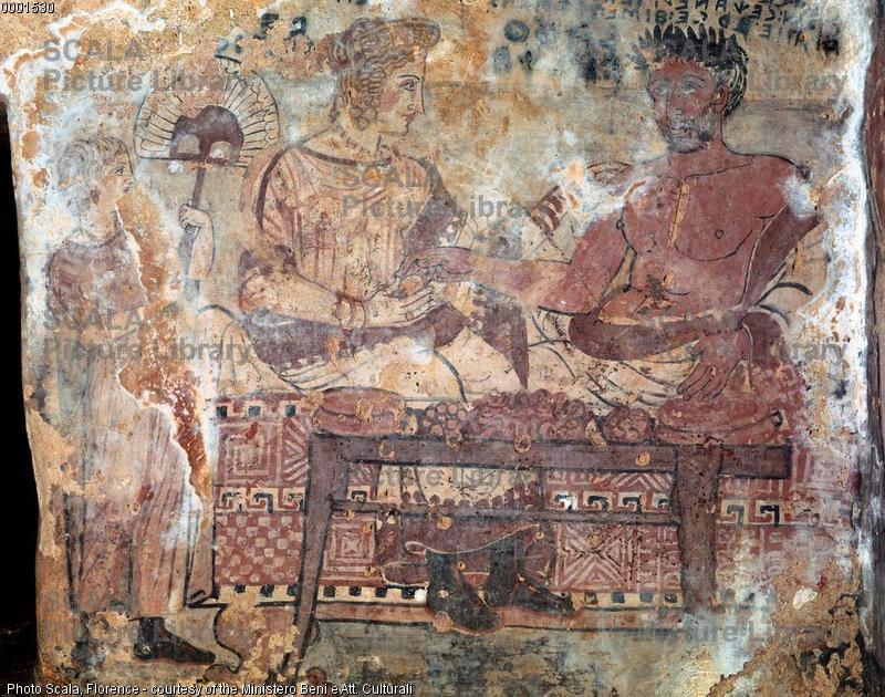 Il banchetto così spesso riprodotto negli affreschi tombali aveva per gli etruschi un duplice significato Era cerimonia religiosa in quanto i parenti del defunto, tra le cerimonie funebri partecipavano ad un banchetto, al quale si pensava fosse presente anche lo spirito del deceduto.