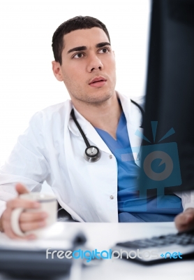 Suo Work Ufficio Dottore Assistente Medico Giovane Canstock
