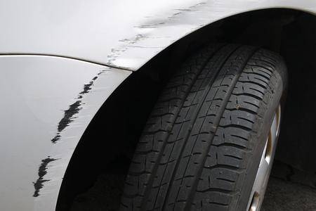 Rotto Graffiato Parafango Posteriore Auto Graffiato Con Profondi Danni Alla Vernice Close Up Foto Stock Alamy