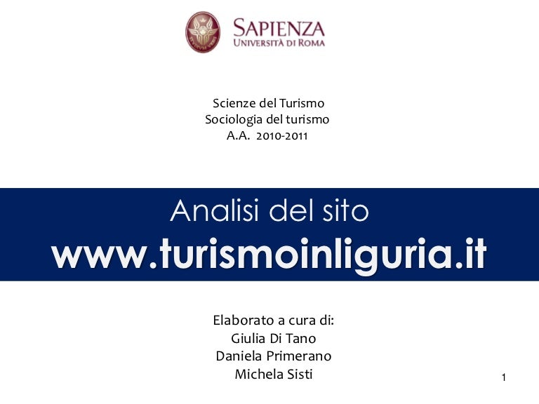 Un esempio presso la Facoltà di Economia della Sapienza è attivo il corso in Turismo e gestione delle risorse ambientali (LM76 Scienze Economiche per l'ambiente e la cultura) Oppure l'Università Europea di Roma che offre la Laurea triennale in Turismo e valorizzazione del territorio. Corso di laurea triennale in scienze del turismo – Piano di studi Piano di Studi AA /21 PIANO DI STUDI PRIMO ANNO Utilizziamo i cookie per essere sicuri che tu possa avere la migliore esperienza sul nostro sito Se continui ad utilizzare questo sito noi assumiamo che tu ne sia felice. The Scienze Del Turismo Department at La Sapienza University of Rome on Academiaedu.