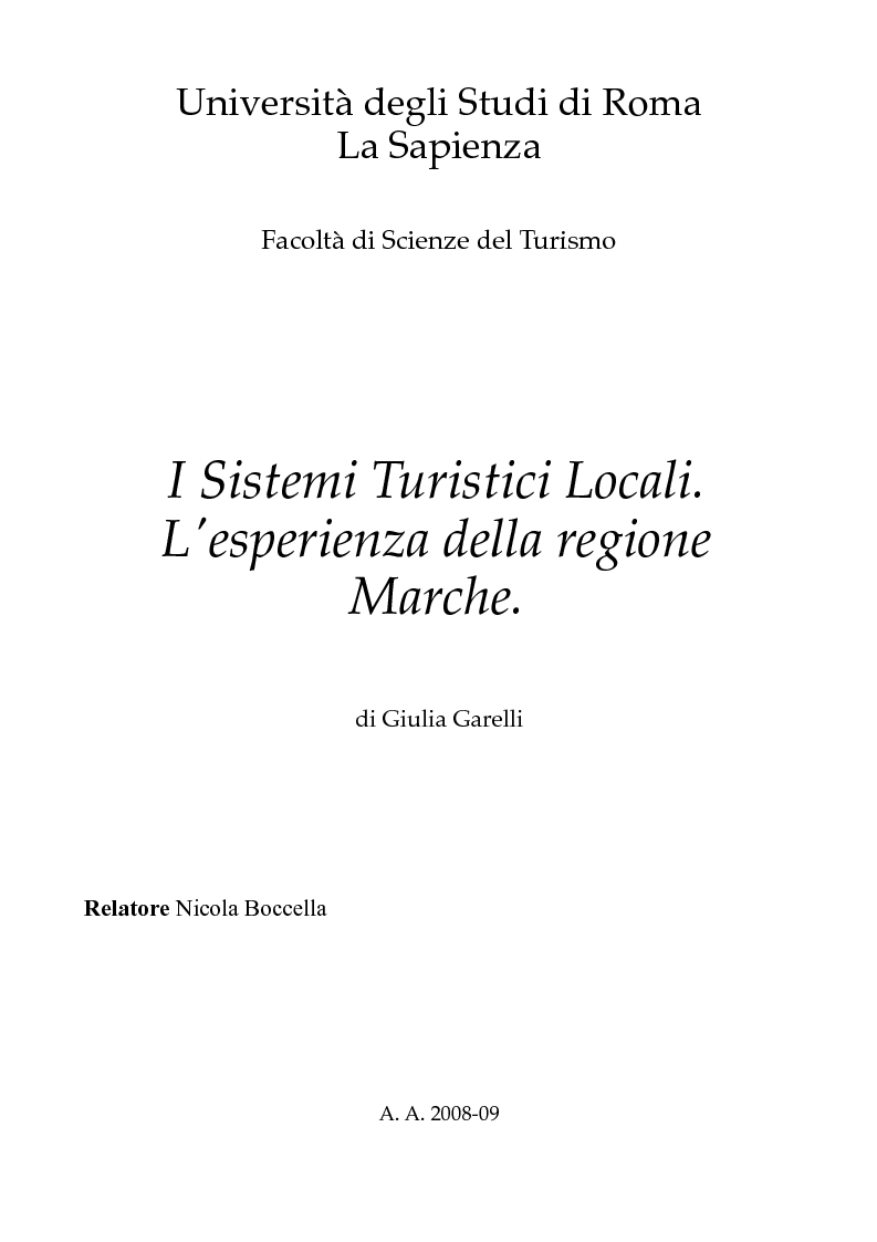 Universita Degli Studi Di Roma La Sapienza Facolta Di Scienze Del Turismo I Sistemi Turistici Locali Tesionline
