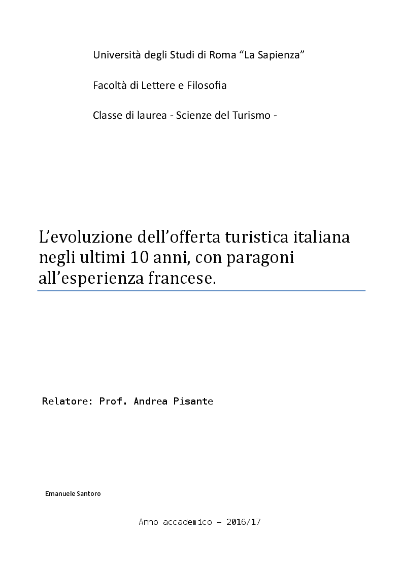 Emanuele Santoro Universita Degli Studi Di Roma La Sapienza Facolta Di Leere E Filosofiaclasse Di Laurea Scienze Del Turismo Relatore Tesionline