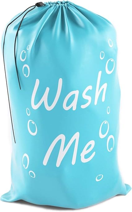 Grande Borsa Per La Biancheria Sporca Colore Azzurro Acceso Con Scritta In Inglese Wash Me