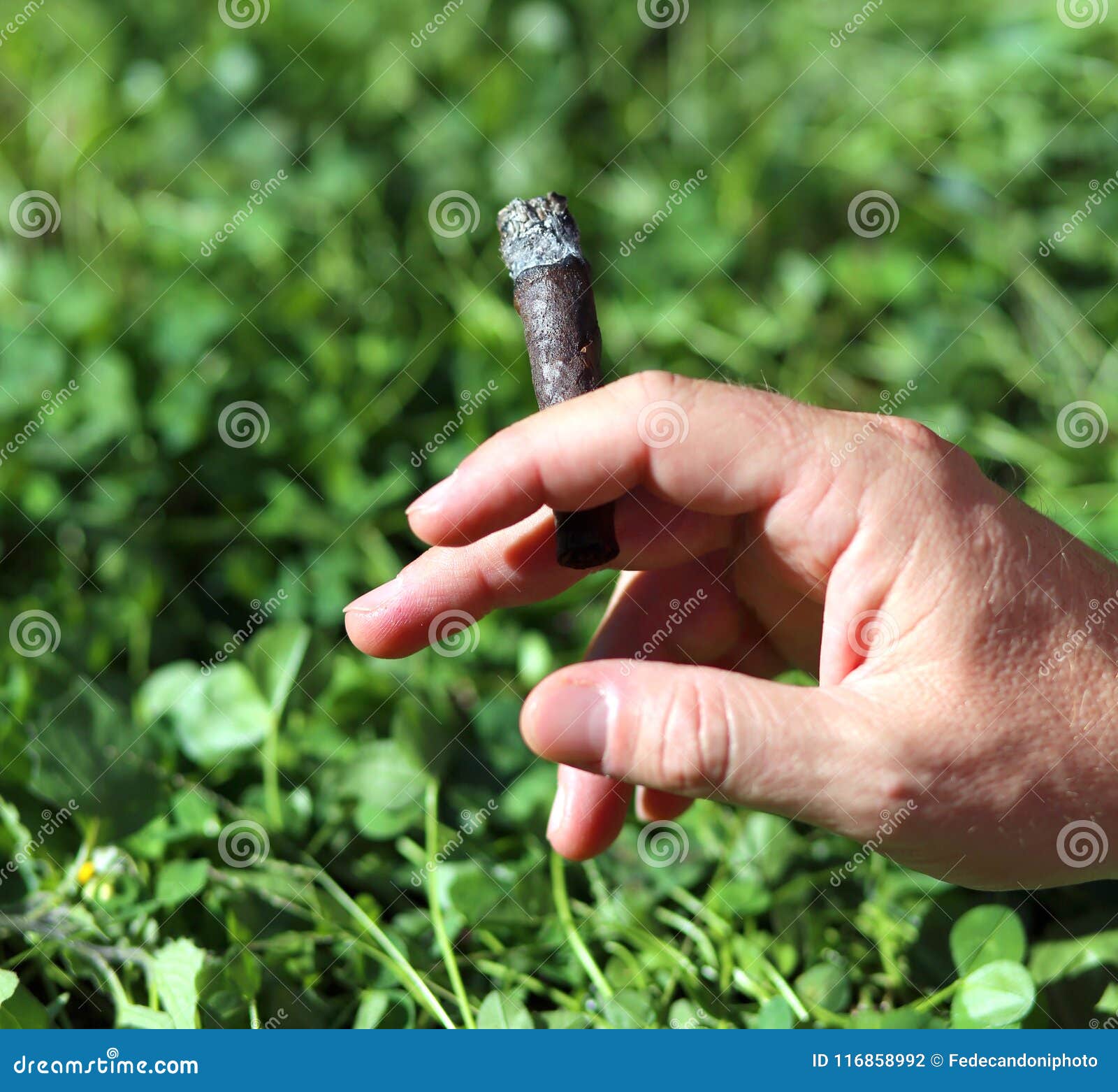 Mano Di Un Uomo Con Il Sigaro Acceso Fotografia Stock Immagine Di Stretta Lifestyle