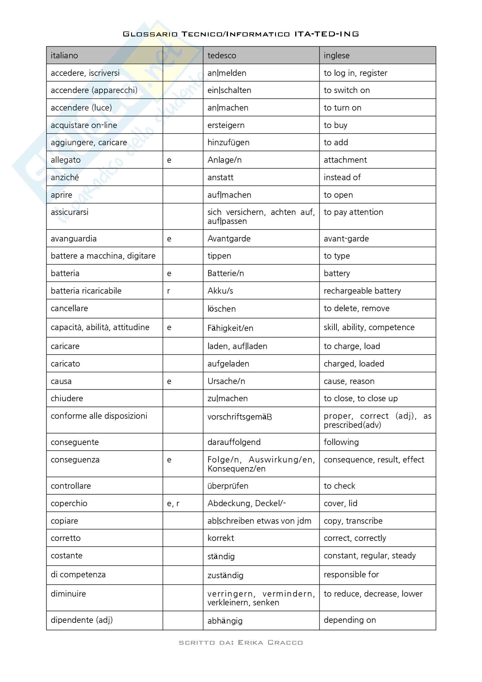Glossario Tecnico Informatico Italiano Tedesco Inglese