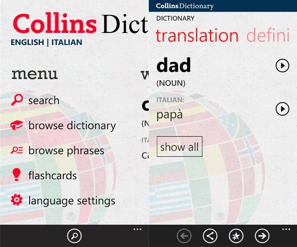 Il Dizionario Inglese Italiano Di Collins Disponibile Come App Per Windows Phone Hdblog It