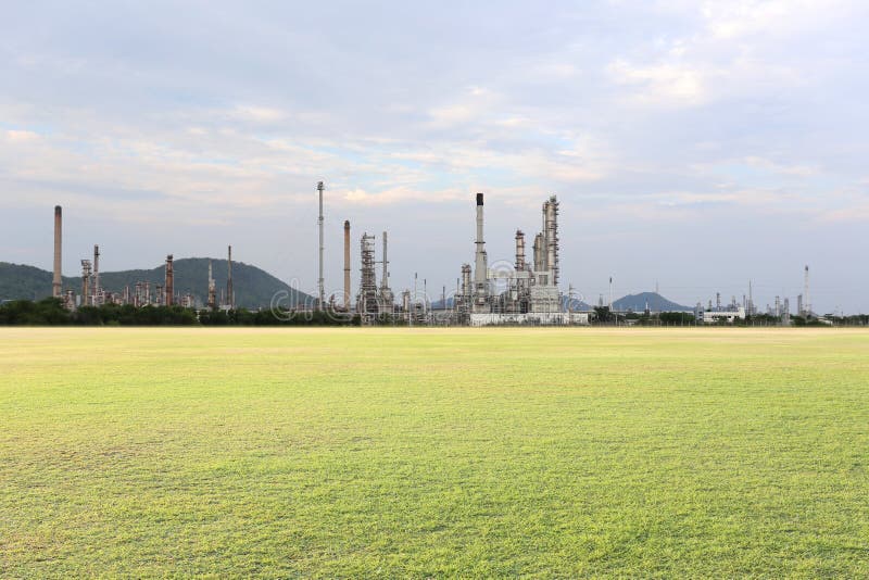 Raffineria Di Petrolio E Prato Inglese Verde Fotografia Stock Immagine Di Commercio Chemical