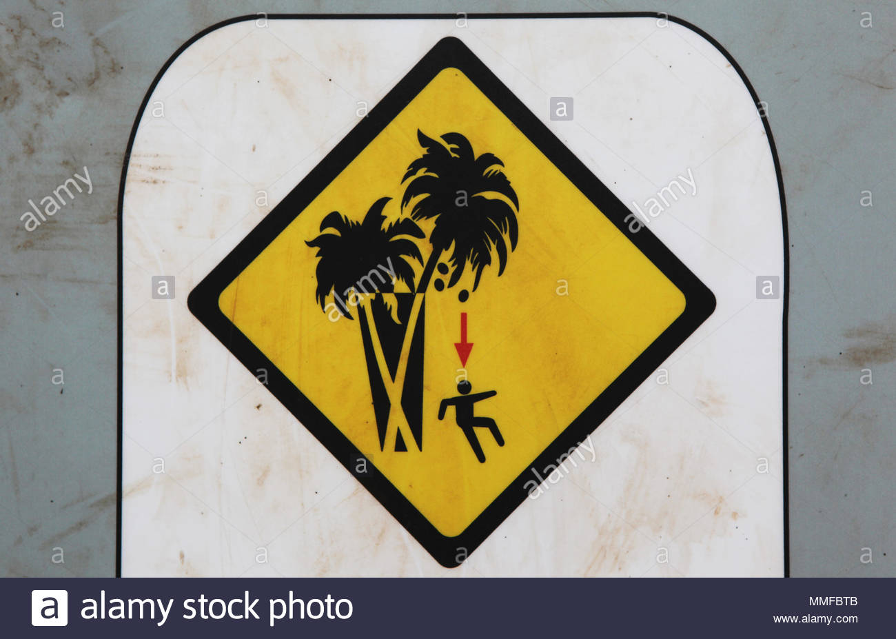 Un Segno Di Avvertimento Del Pericolo Di Caduta Di Noci Di Cocco In Anakena Beach Sull Isola Di Pasqua Foto Stock Alamy
