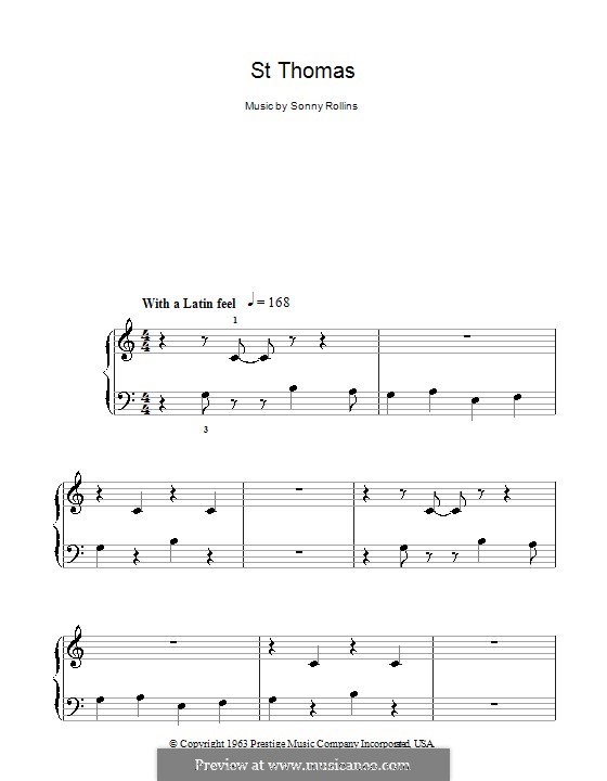 Sonny Rollins St Thomas Sheet Music Pdf Notes Chords Jazz Score Piano Vocal Guitar Right Hand Melody Download Printable Sku