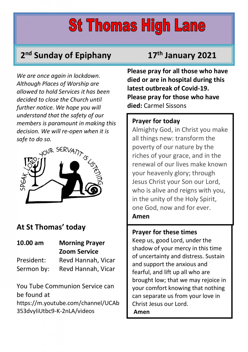 Notice Sheet For Sunday 5th January St Thomas Church Facebook