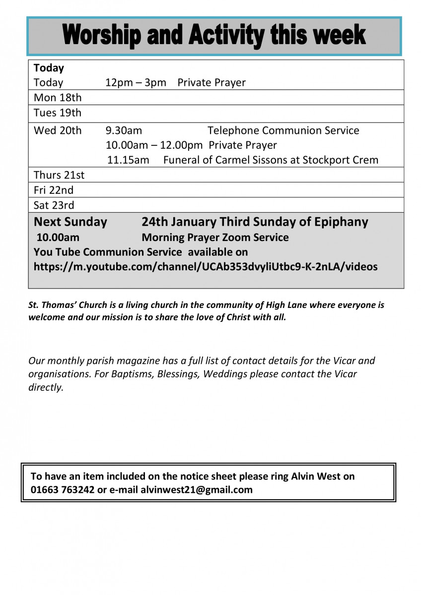 St Thomas Br High Lane Village Weekly Notice Sheet