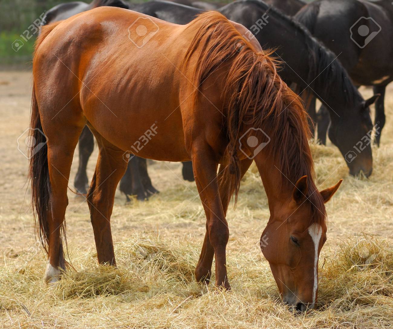 Immagini Stock Cavalli Di Razza Inglese Nel Rifugio In Azienda Nel Solare Giorno D Estate Image