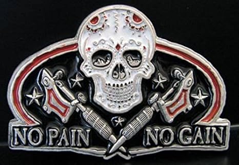 Skull Buckle No Pain No Gain Tatuaggio Superiore Del Cranio Amazon It Sport E Tempo Libero