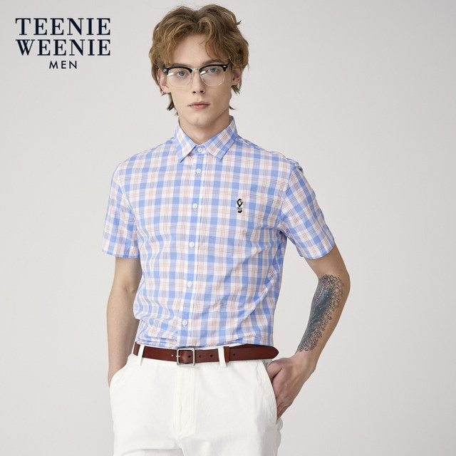 Teenieweenie Bear Men S Korean Fashion Casual Plaid Lapel Short Sleeve Shirt Summer Men S Top