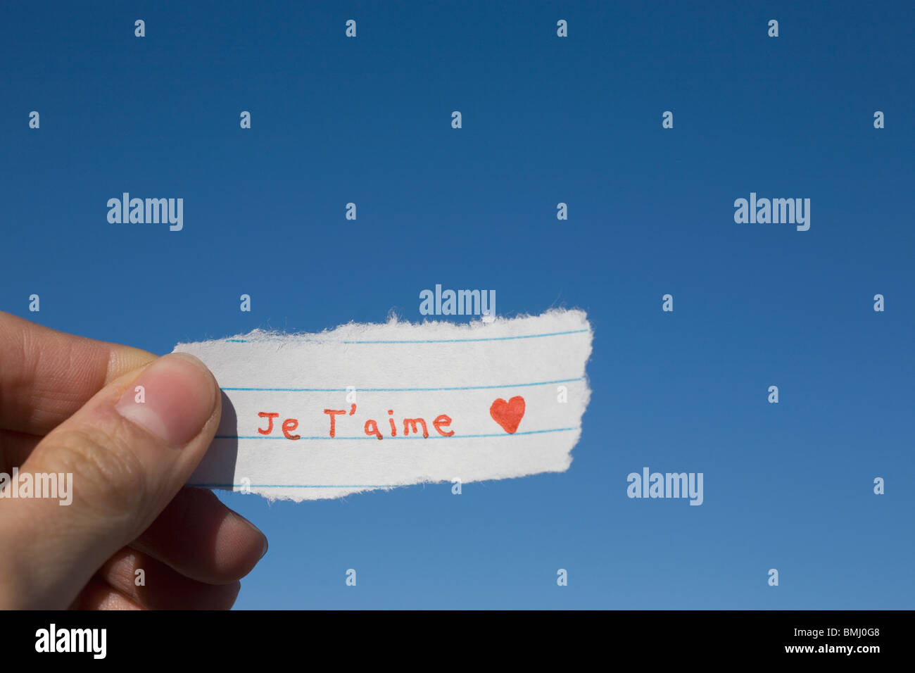 Mano Azienda Francese Ti Amo Nota Foto Stock Alamy
