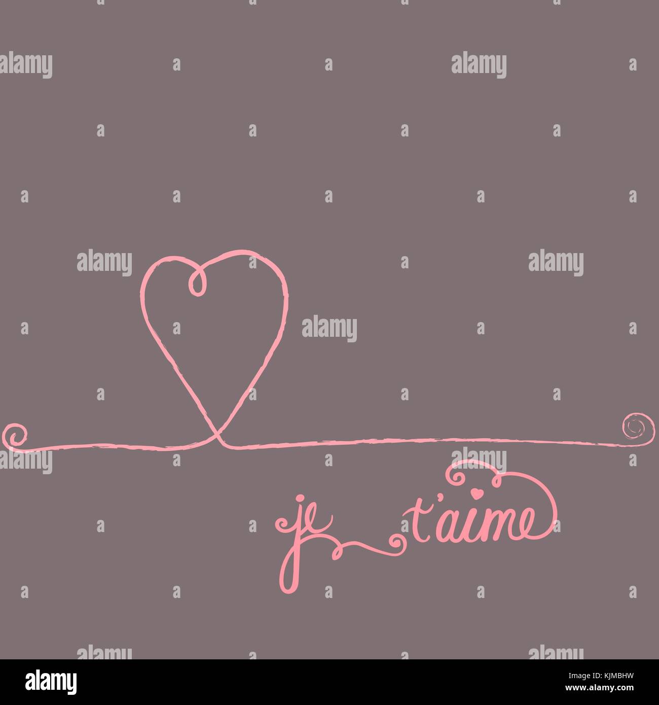 Freehand Doodle Vettore Greeting Card Je T Aime Scritte In Francese Ti Amo Cuore Decorativo I Dettagli Di Swirl Creative Design Unico Spazio Copia Temp Immagine E Vettoriale Alamy