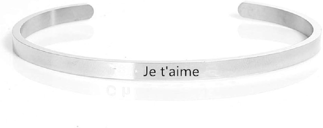 Strass Paillettes Bracciale Anello Con Messaggio Je T Aime Ti Amo In Francese Bracciale In Acciaio Inossidabile Braccialetto D Amore Amazon It Gioielli