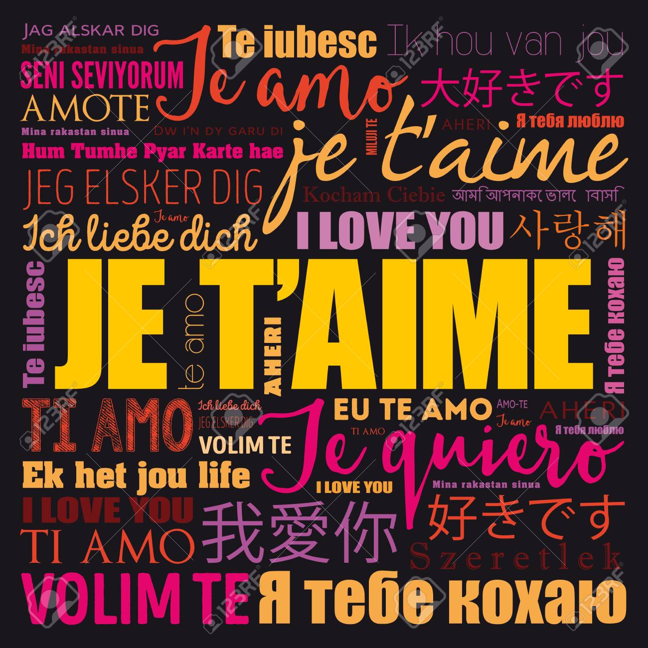 Vettoriale Je Ta A A Aime Ti Amo In Francese In Diverse Lingue Del Mondo Sfondo Della Nuvola Di Parole Image