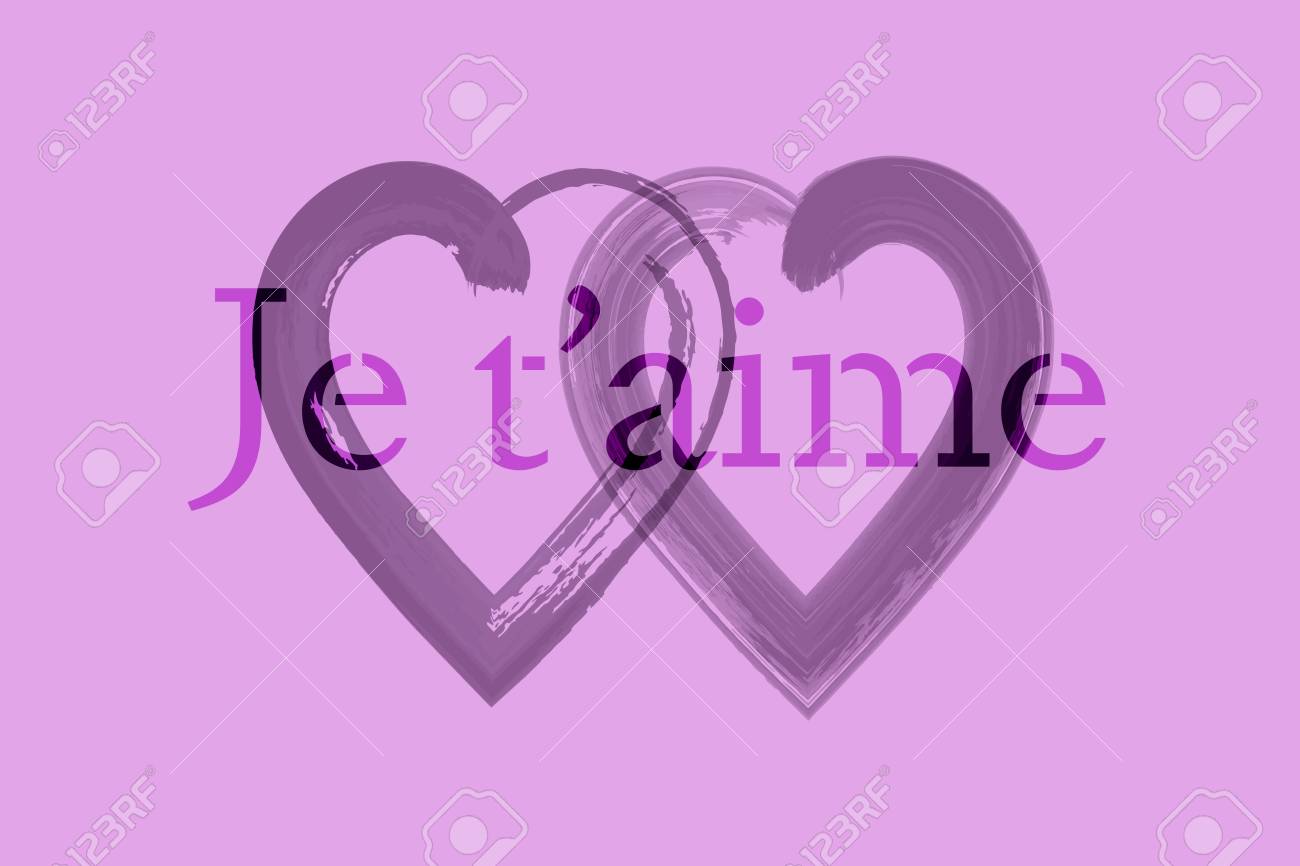 Immagini Stock San Valentino Due Cuori In Stile Acquerello E Testo Ti Amo In Francese Image