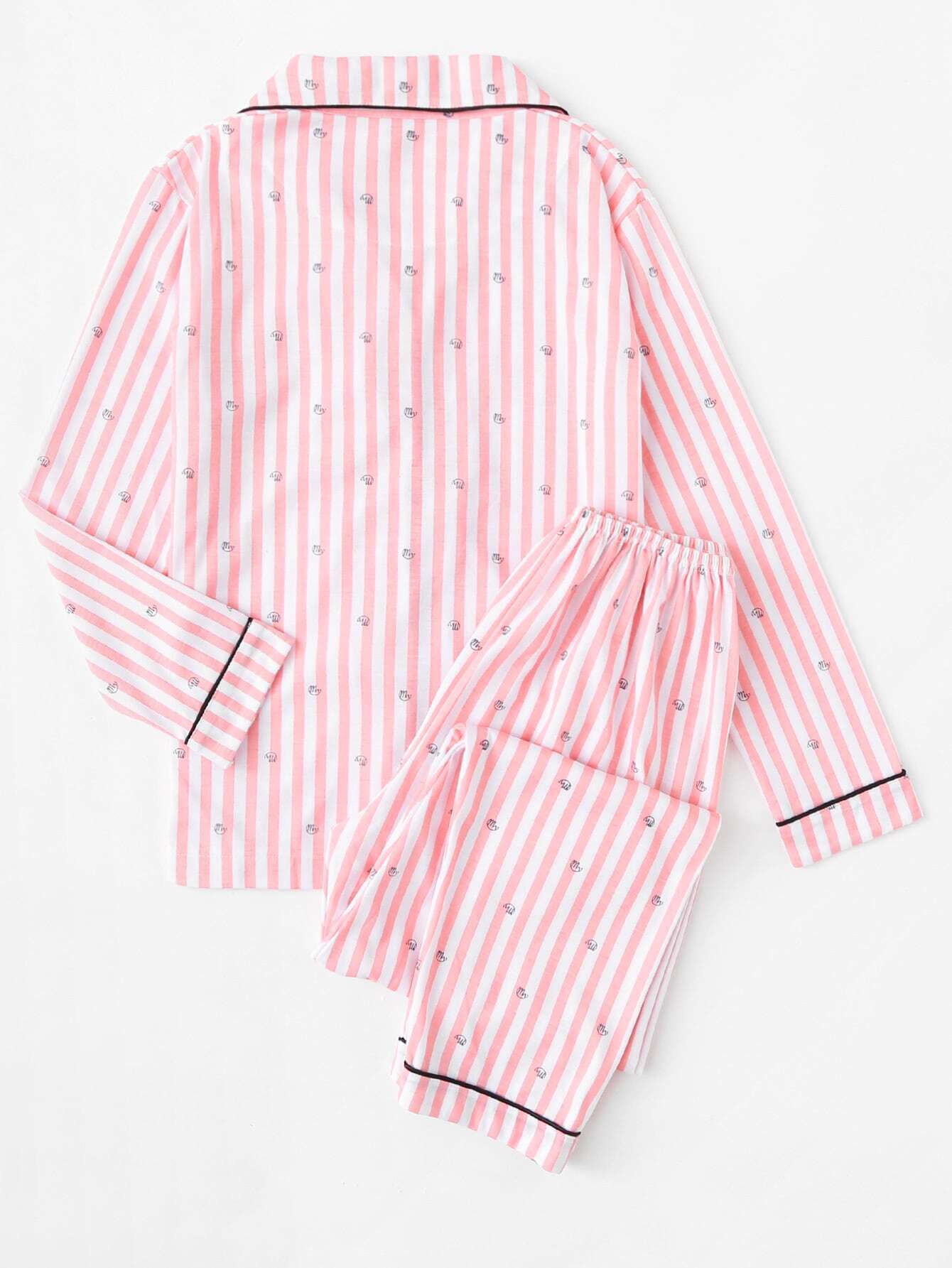 Set Pigiama In Raso A Righe Con Ricamo A Lettera Shein Italia