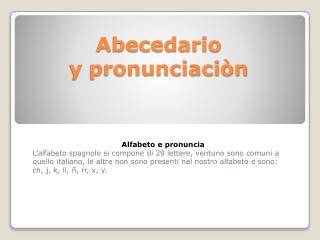 Lo spagnolo, a causa dell'enorme estensione di territorio in cui esso è lingua ufficiale, presenta alcune variazioni nella pronuncia in base al paese o alla regione in cui esso è parlato. Alfabeto e pronuncia dello spagnolo:. Per l'inglese aiuto SOLO a migliorare la pronuncia.