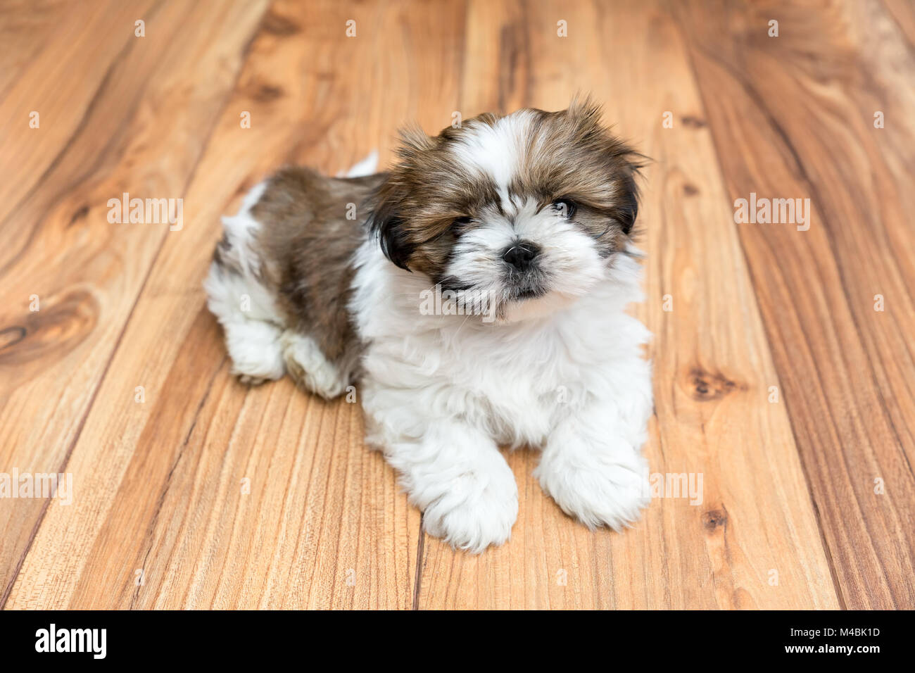 Giovani Chi Chu Cane Sdraiato Sul Pavimento In Parquet Foto Stock Alamy