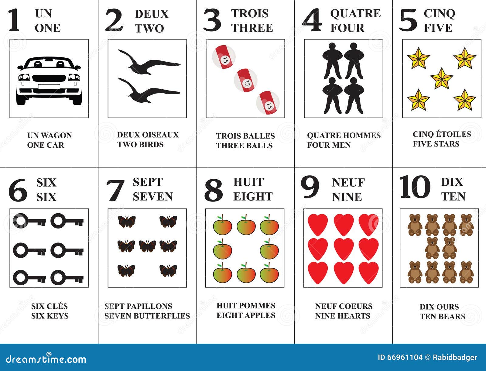 Numeri da 1 a 00 in francese;. 1 in francese Un Come si dice Il numero 1, uno in Italiano, in Francese si dice un Il tuo browser non supporto l'audio HTML5 Ordinale Il numero ordinale 1° in francese si dice premier Vai alle altre traduzioni Altri numeri 2 deux 3 trois 4 quatre 5 cinq. I NUMERI SULL`ABACO DA 1 A 10 Maggiore minore o uguale da 0 a 10 con Uguamami DECINE E UNITÀ MAGGIORE, MINORE, UGUALE (ENTRO IL 50) I NUMERI DA 0 A 9 FRANCESE DA 1 A 10 Abbinamenti di Musica Prima media Francese NUMERI DA 1 A 10 Riordina i numeri da 0 a 15 Riordina di Nellac.