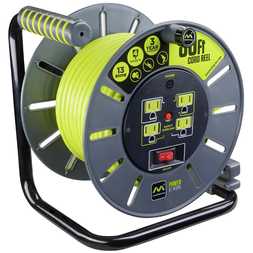 Masterplug 80 Ft 13 Amp 14 3 Large Open Cable Reel With 4 Sockets Olag4sl The Home Depot
