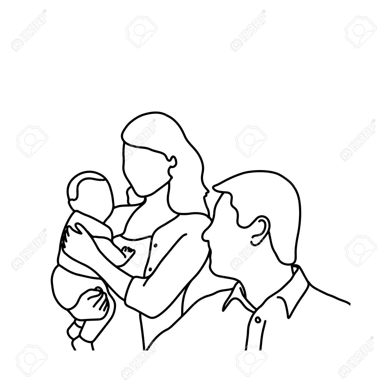 A Father Mother And Baby Vector Illustration Sketch Hand Drawn Royalty Free Cliparts Vectors And Stock Illustration Image
