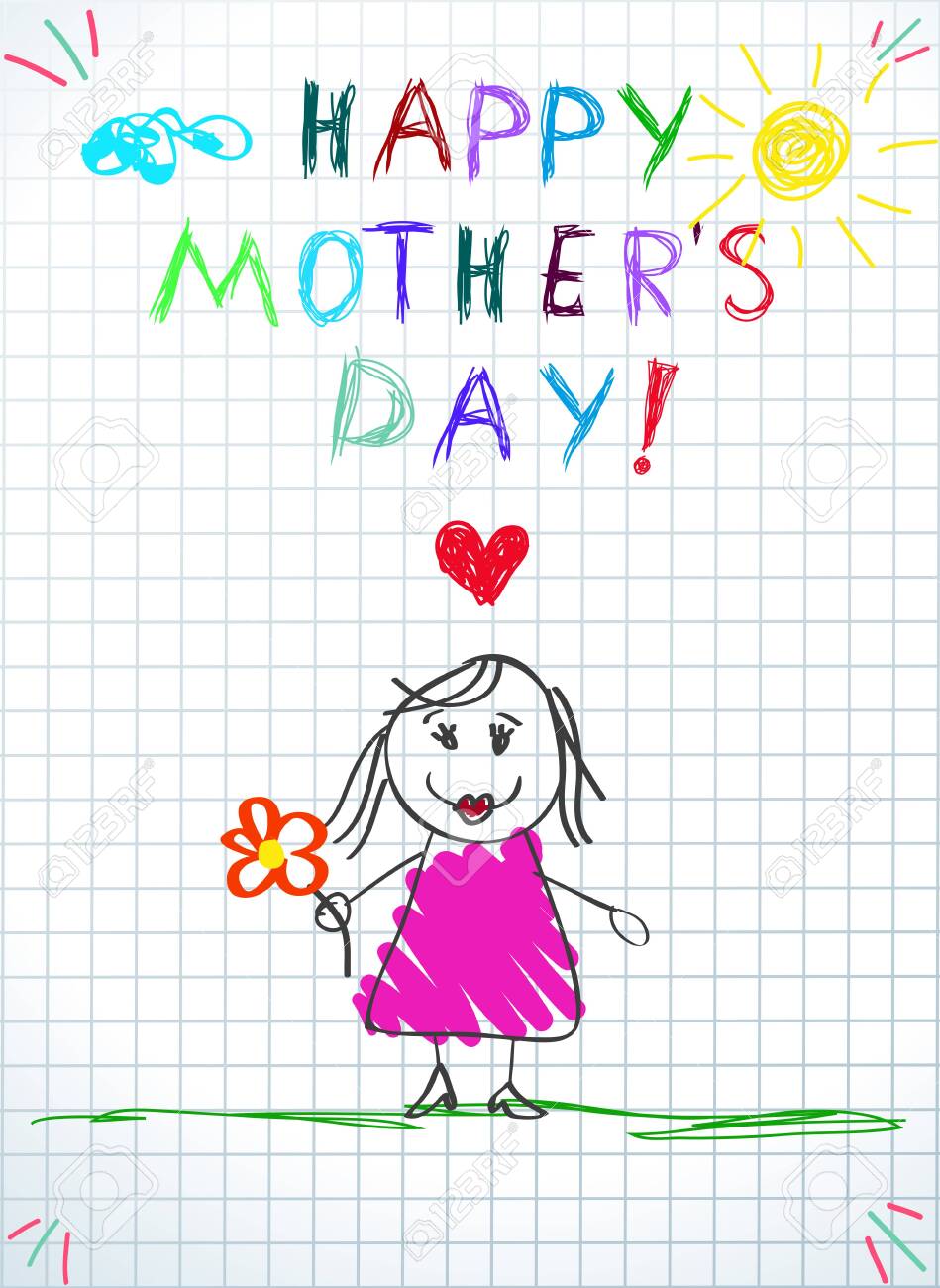 Happy Mothers Day Greeting Card Baby Drawing Illustration With Royalty Free Cliparts Vectors And Stock Illustration Image