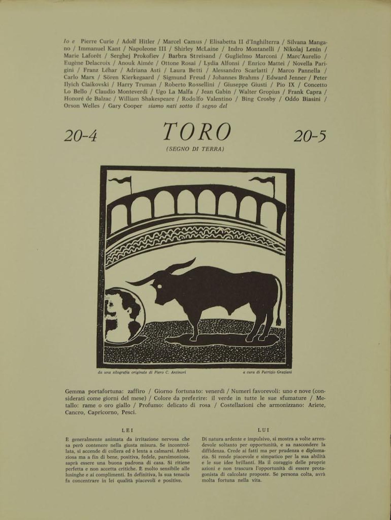 Piero C Antinori Taurus Original Woodcut Print By P C Antinori th Century For Sale At 1stdibs