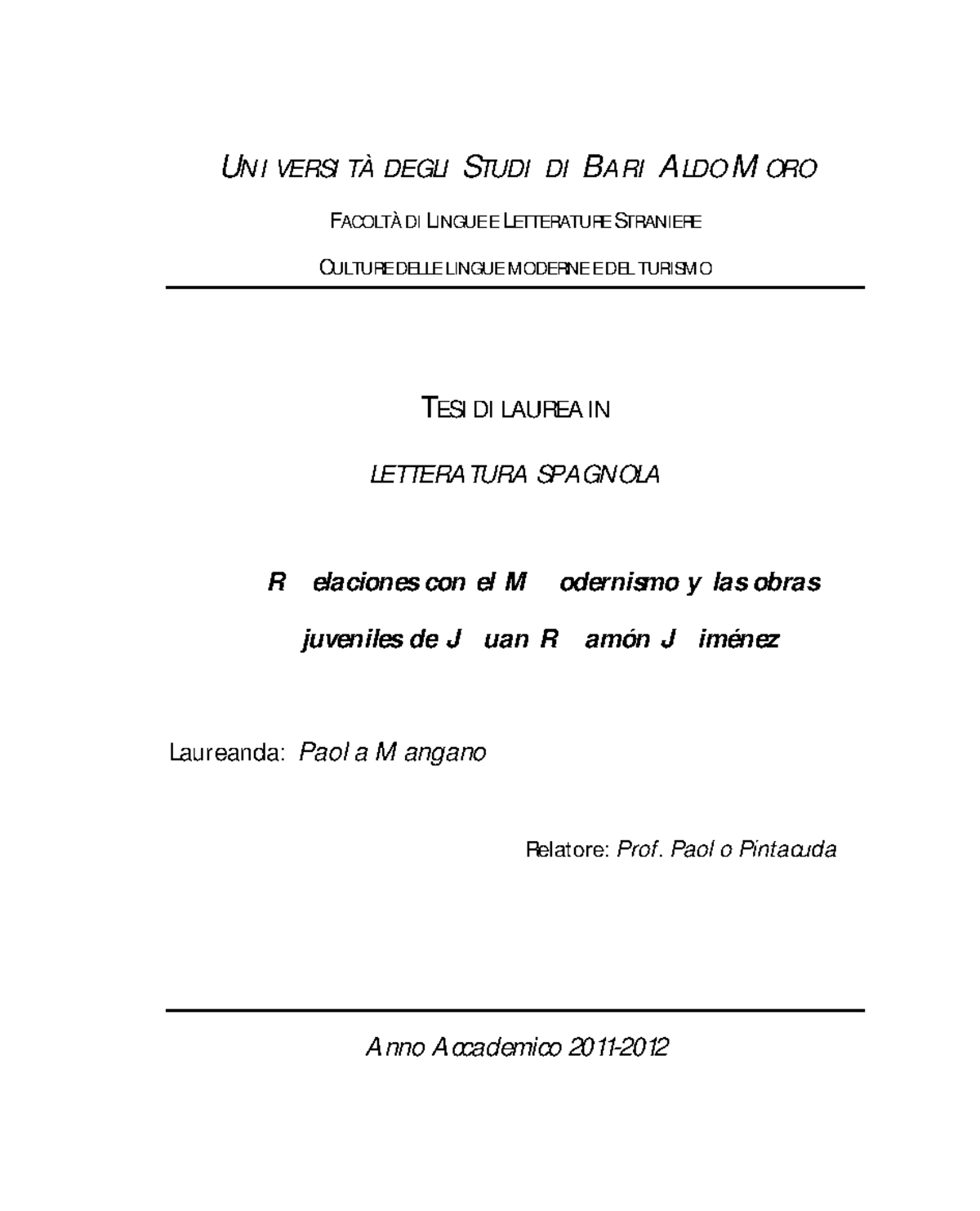 Tesi Di Laurea Triennale In Letteratura Spagnola Docsity