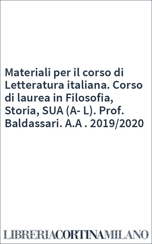 Materiali Per Il Corso Di Letteratura Italiana Corso Di Laurea In Filosofia Storia Sua A L Prof Baldassari A A 19 Autori Vari Consegna Gratis