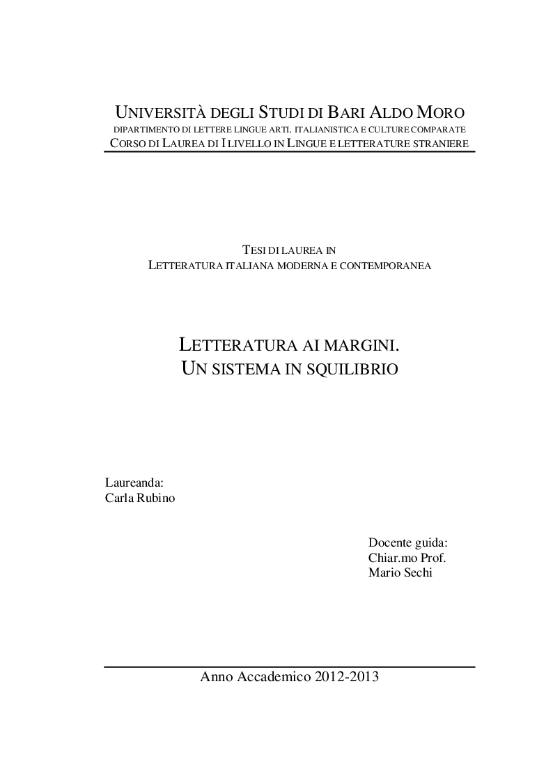 Italianistica E Culture Comparate Corso Di Laurea Di I Livello In Lingue E Letterature Straniere Tesi Di Laurea In Letteratura Italiana Moderna E Contemporanea Letteratura Ai Margini Tesionline