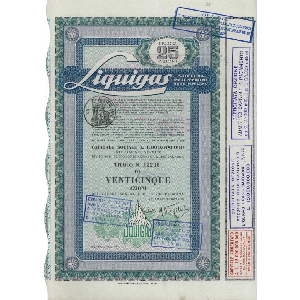 Liquigas 25 Azioni Milano 1960 Ebay