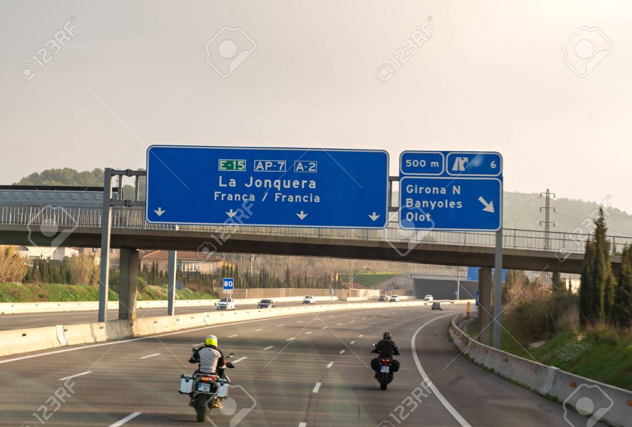 Arrival Highway Sign To La Jonquera Before Passing The Border Between Spain And France Stock Photo Picture And Rights Managed Image Pic L21 Agefotostock