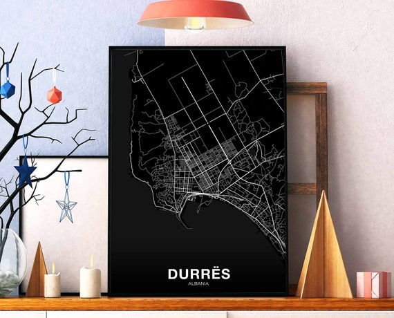 Durres Albania Map Poster Black White Hometown City Print Etsy