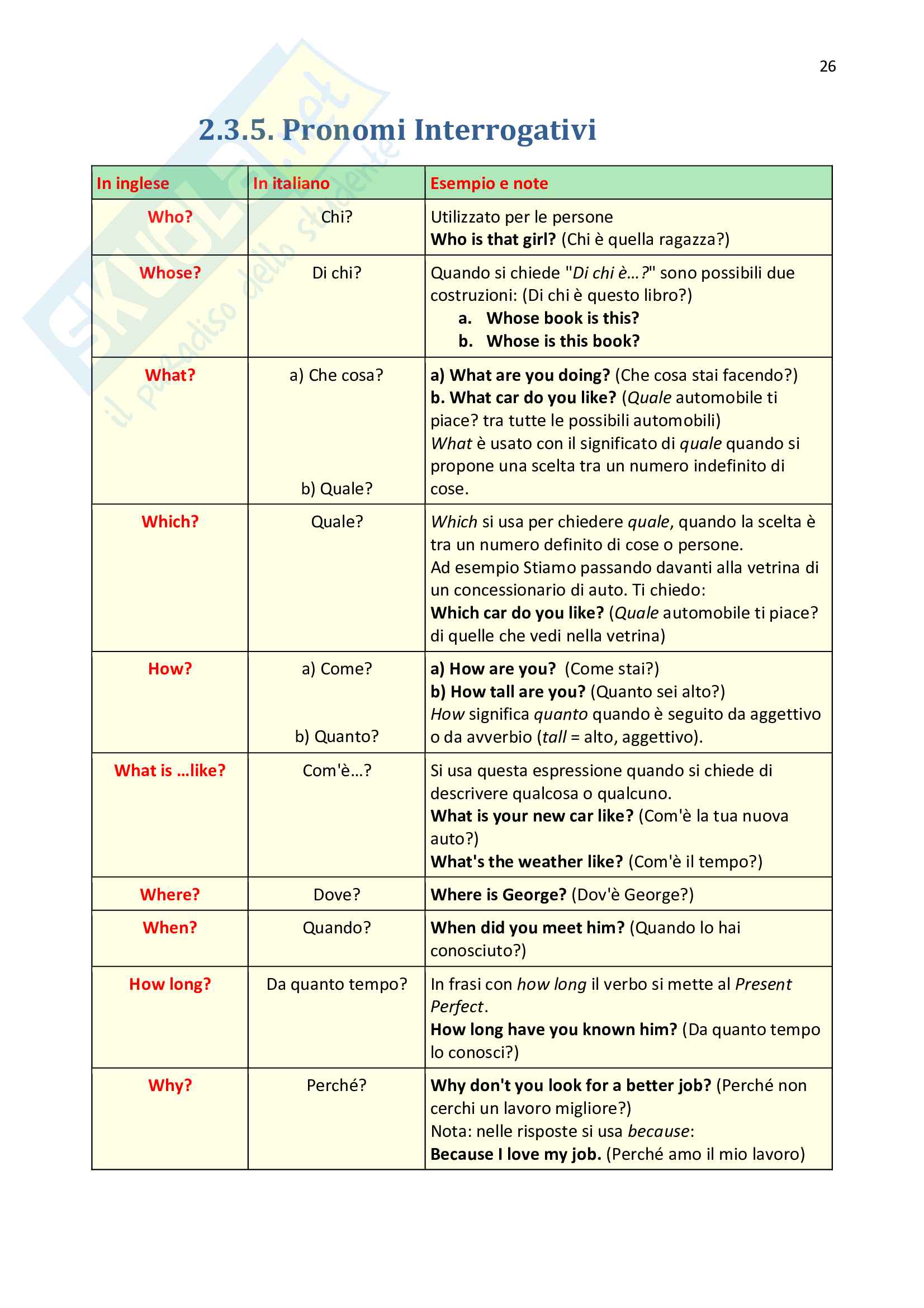 Inglese Aggettivi E Pronomi Interrogativi Docsity