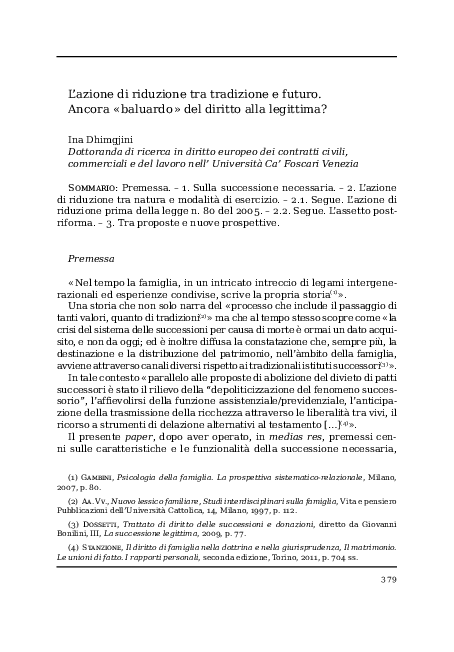 Pdf L Azione Di Riduzione Tra Tradizione E Futuro Ancora Baluardo Del Diritto Alla Legittima Ina Dhimgjini Academia Edu