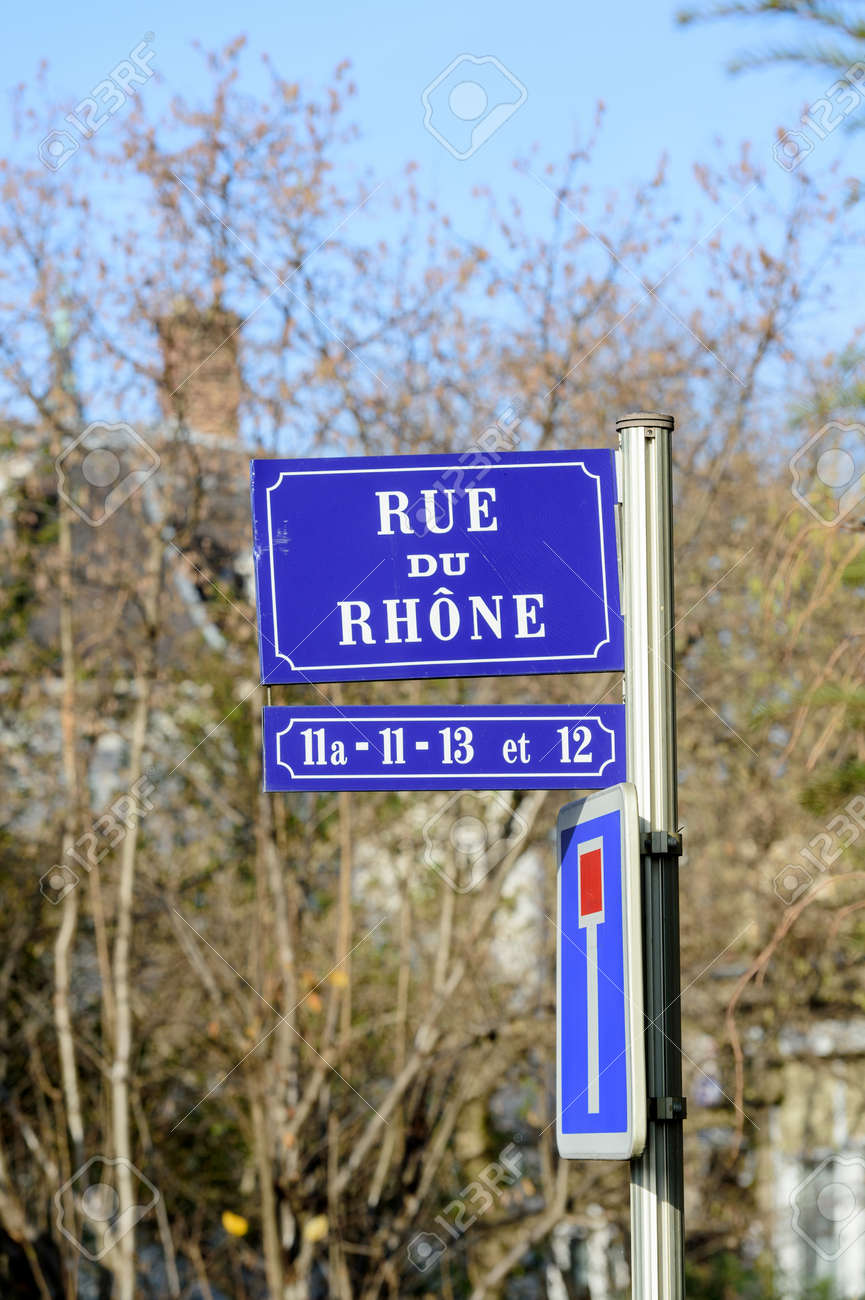 Immagini Stock Rue Du Rhone Tradotto Come Via Rodano Con Indicatori Di Numeri Di Casa Blu Visto In Citta Francese Di Mulhouse Alsazia Francia Image