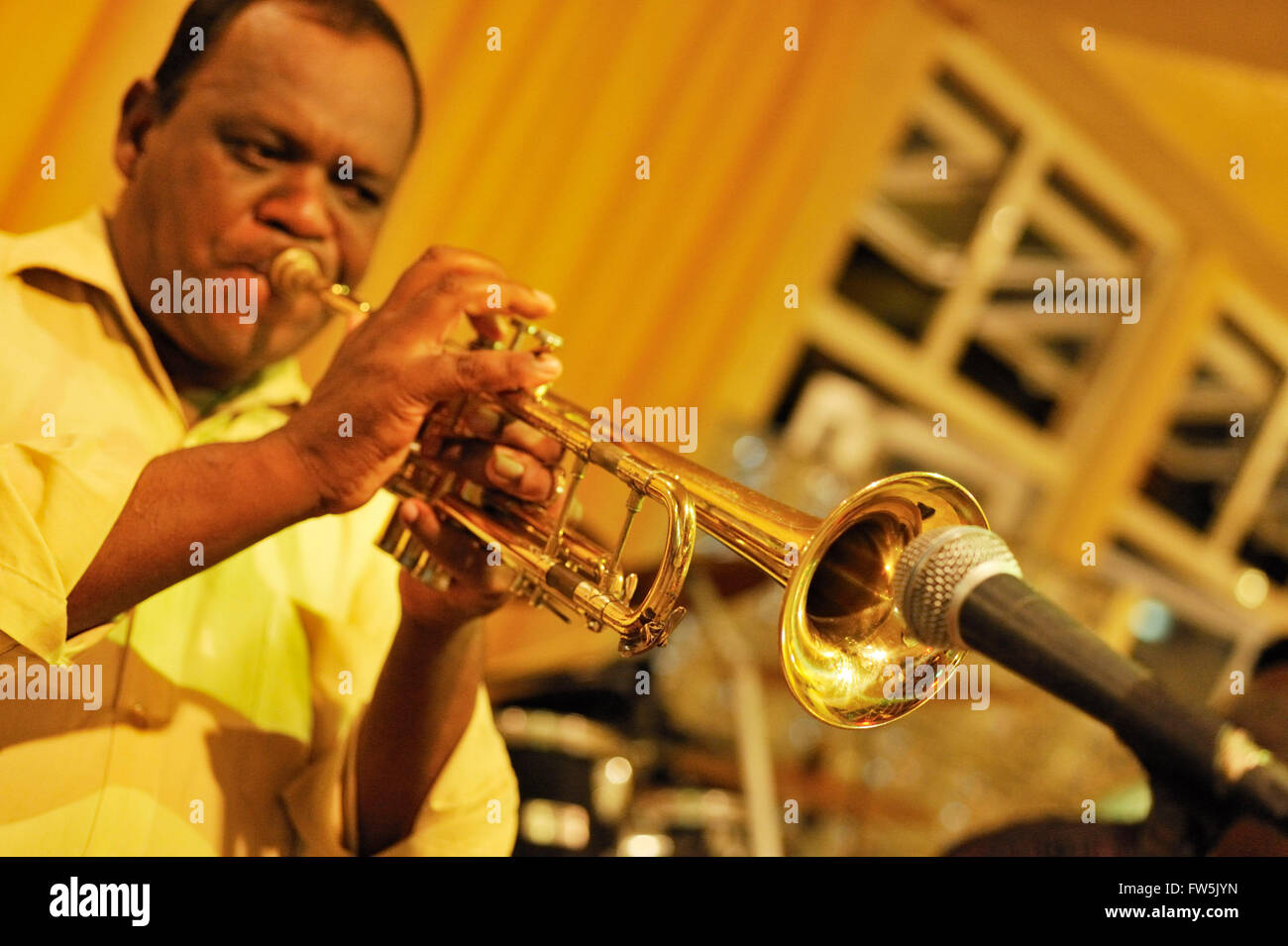 Trombettista Nero In Hotel Night Club Mauritius Riproduzione Di Sega Musica Leggera E Jazz Foto Stock Alamy